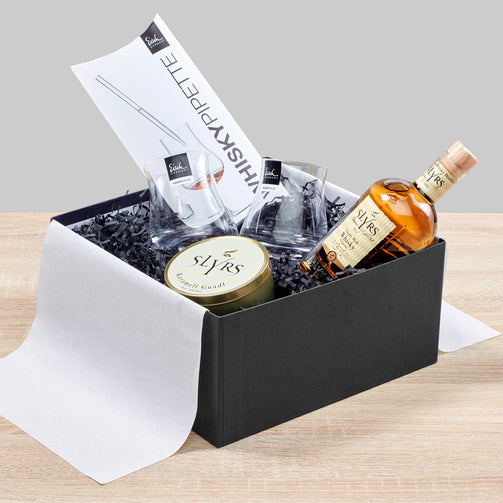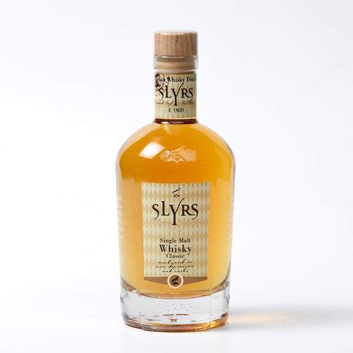 Classic Bavarian Single Malt Whisky von Slyrs - Mit einem Kasten Weißbier fängt die Geschichte des bayerischen Single Malt an. Nämlich als Destillateur-Meister Florian Stetter bei einem Schottlandbesuch wettet, dass auch in Oberbayern erstklassiger Whisky gebrannt werden kann… 2002 kommen die ersten Flaschen auf den Markt und finden reißenden Absatz. Längst begeistert der einzigartige Slyrs aus bayerischer Sommergerste und reinem Gebirgsquellwasser Kenner weltweit. (0,350 l)