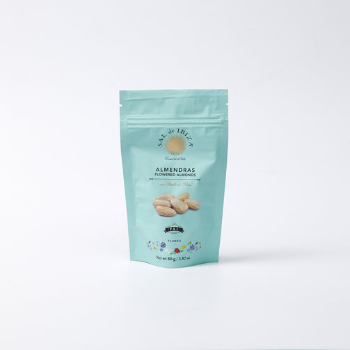 Mandeln mit Blütensalz von Sal de Ibiza - Das Wort Snack ist viel zu profan für diese feine Köstlichkeit: Mandeln der Supersorte Marcona, behutsam geröstet und anschließend gewürzt mit handgeschöpftem Salz aus den berühmten Salinen Ibizas sowie einer speziellen Blütenmischung aus Rosen, Kornblumen und Orange. Das passende Adjektiv für den feinen Geschmack muss erst noch erfunden werden… (80 g)