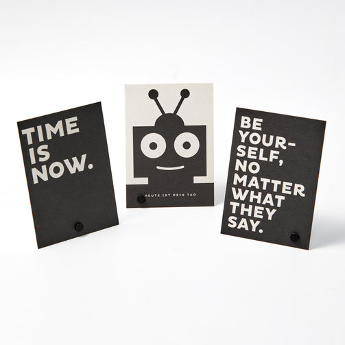 Postkarten von Fox & Poet - Ein Gedanke, eine Karte, eine Freude! Bei den Postkarten von Fox & Poet stellt sich stets die Frage: verschicken oder lieber selbst behalten? Das liegt zum einen an den wunderbaren Motiven, zum anderen an der gekonnten Gestaltung. Starke Typografie, klare Schwarz-Weiß-Kontraste, edler Minimalismus sind typisch für das Münchner Label Fox & Poet und seine Papeteriewaren. (3er-Set)