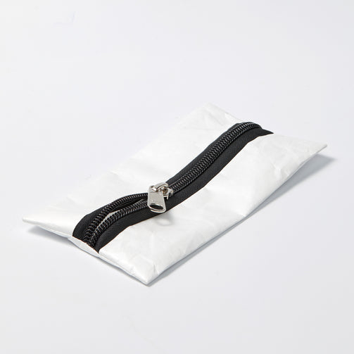 Big-Zipper-Tasche von Johannes Lerch - Das Prinzip ist herrlich einfach und ebenso überzeugend: Alles, was auf dem Schreibtisch herumliegt, Taschenrechner, Tacker, Bleistifte – verschwindet nach getaner Arbeit in dem schlichten Etui mit Statement-Reißverschluss. Nicht ohne Grund hat ihr Schöpfer, der Wiener Johannes Lerch, ihr den Zweitnamen Aufräumtascherl gegeben. Hergestellt wird das nützliche Accessoire in eigener Werkstatt aus recycelbarem Kunstfaservlies in Papieroptik. (25 x 13,5 cm, waschbar)